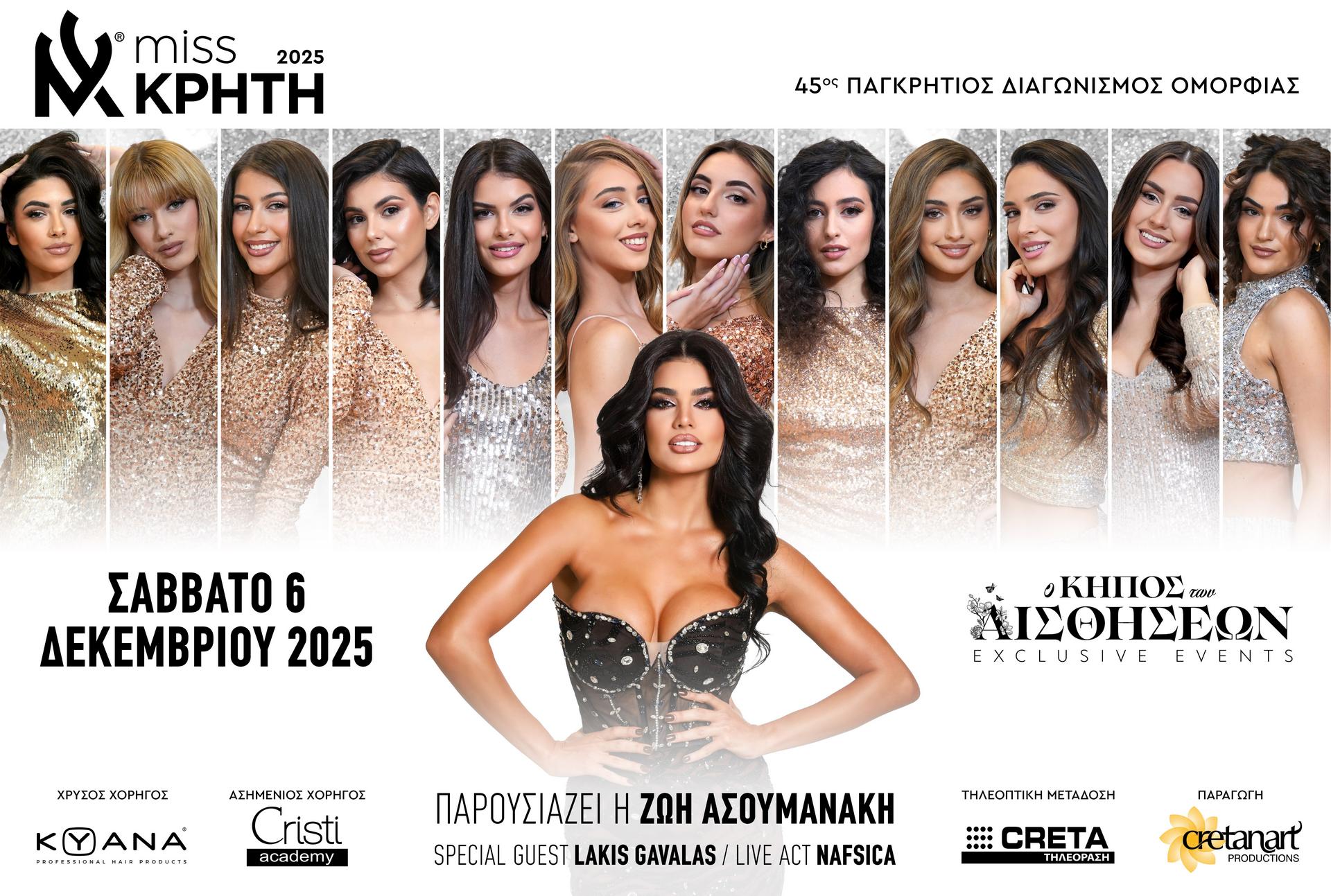 14 πανέμορφα κορίτσια από όλη την Κρήτη διαγωνίζονται για τους πολυπόθητους τίτλους της Miss Κρήτη και της Miss Κρήτη Young 2024 στο μεγάλο Τελικό του